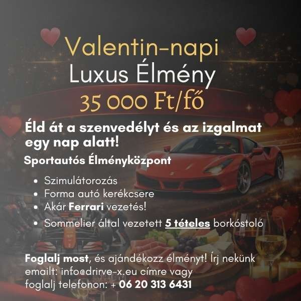 Foglaljon élményvezetést Magyarország legnépszerűbb pályáira Vezess akár, a világ egyik legkedveltebb Forma1-es pályáján, vagy teszteld tudásodat technikás rally fordulóinkban, gyorsulj ott ahol repülőgépekkel szállnak fel és le, a DRIVE-X saját aszfaltján és ismerd meg az adrenalin küszöbödet, okozz vele marandó élményt akár magadnak vagy szeretteid egyikének!